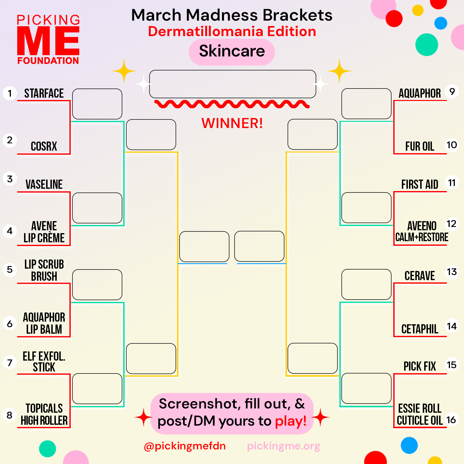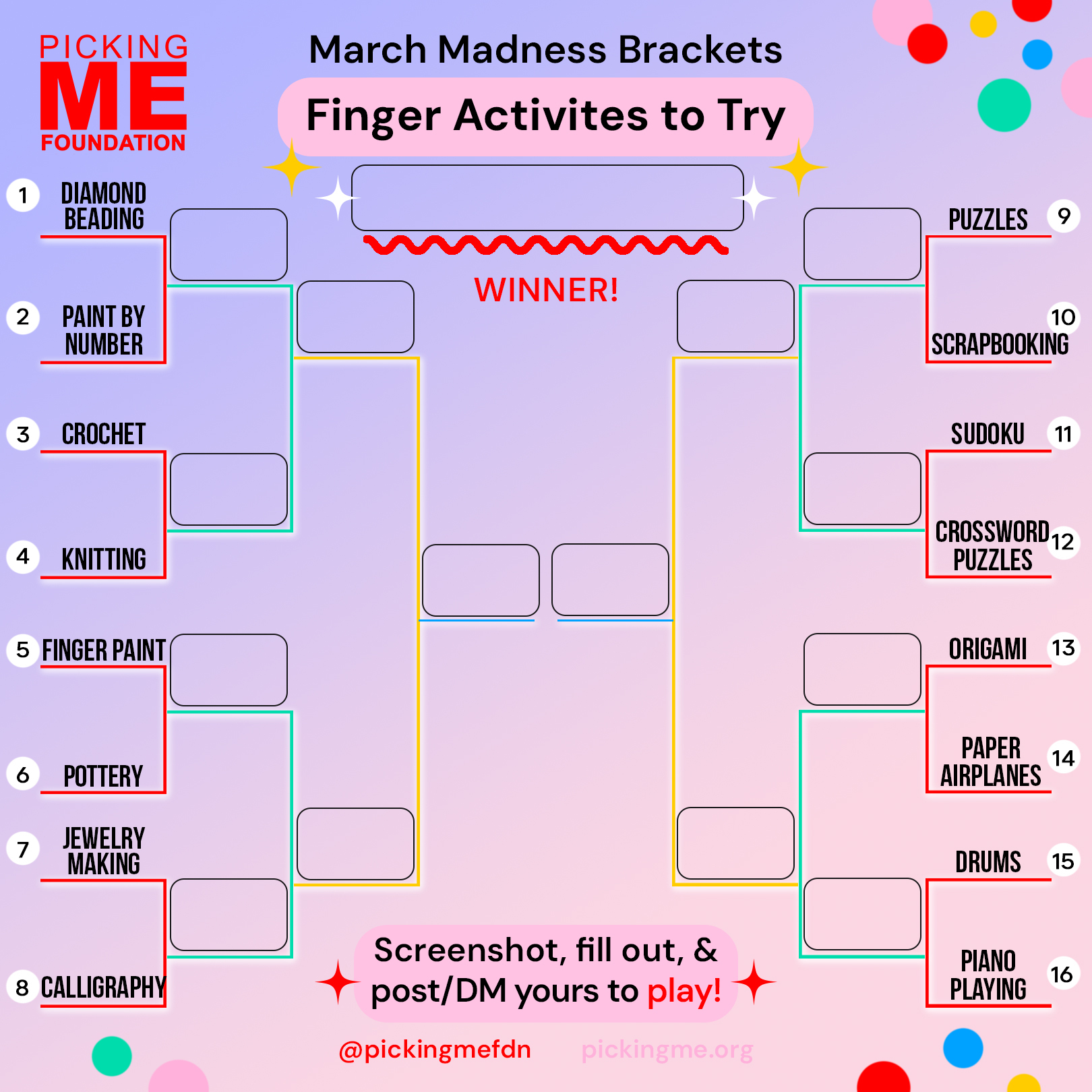 Tap the pics to download our templates below and submit your picks via social media @pickingmefdn, email lauren@pickingme.org or our online form here!